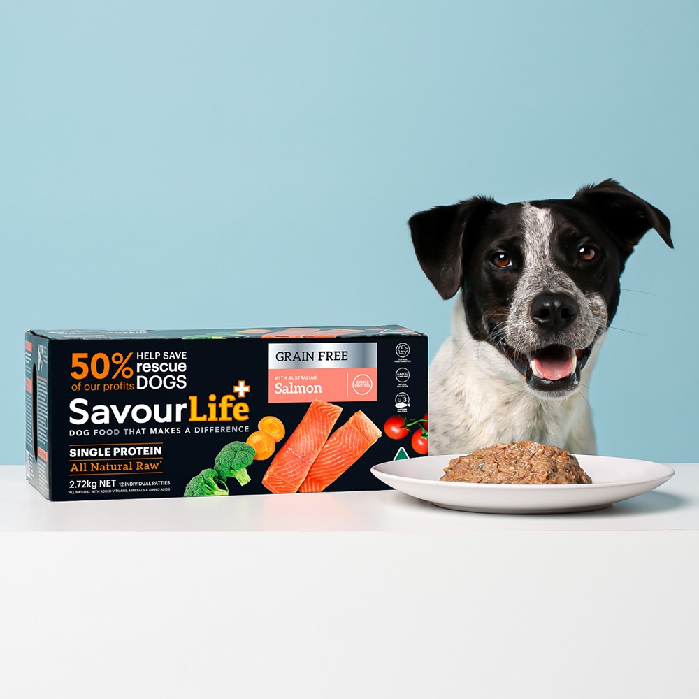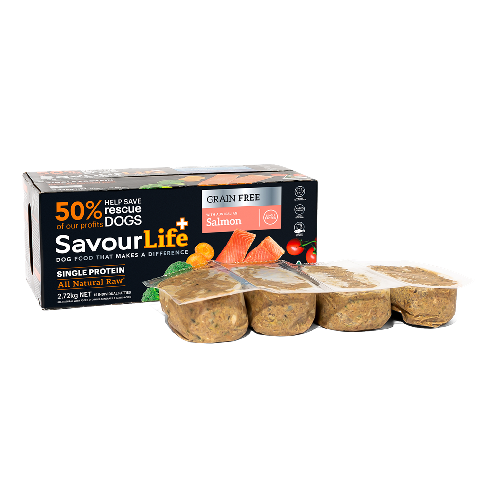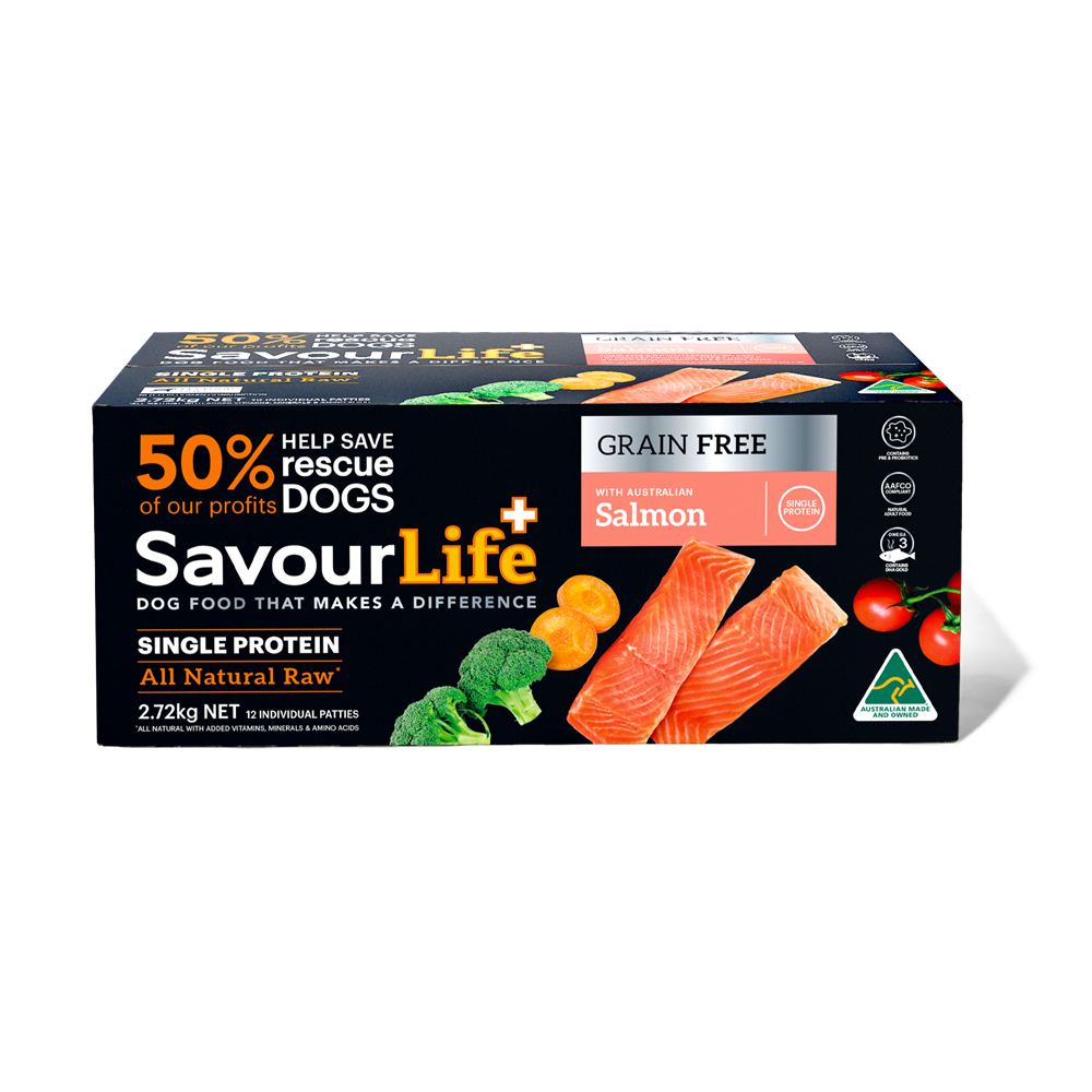Our All Natural Raw Adult Salmon Frozen dog food, is a Single Protein meal that is filled with the finest natural Australian ingredients. With superfood inclusions like broccoli, tomatoes, carrot, apples, oranges and flaxseeds; plus vitamins, minerals, natural pre-biotics, probiotics and amino acids. Plus, it’s grain free, gluten free and hypoallergenic, and contains no artificial colours, flavours, or preservatives.