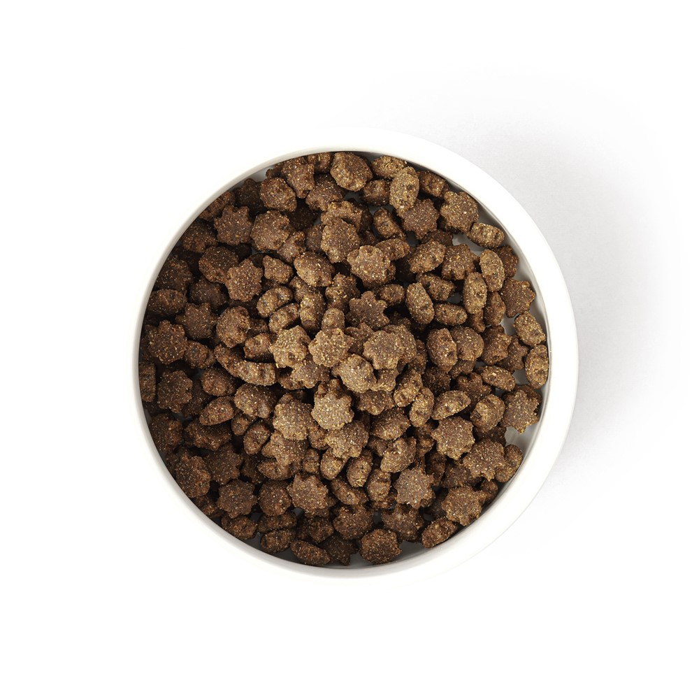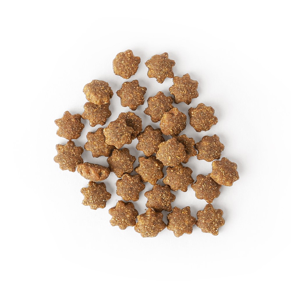 A unique 7-pointed kibble shape forms the cornerstone of this recipe. The innovative design aims to deliver a mechanical cleaning action as dogs chew, which may help effectively scrape away plaque and tarter build up from their teeth; working like an edible toothbrush. The unique kibble shape will be supported by a carefully curated blend of probiotics, vitamins and minerals. This includes probiotics (lactobacillus) to help with oral microbiome balance and reduce bad breath and plaque build-up, and Vitamin C to support gum health. This special formula will help keep a dog’s mouth healthy from all angles.